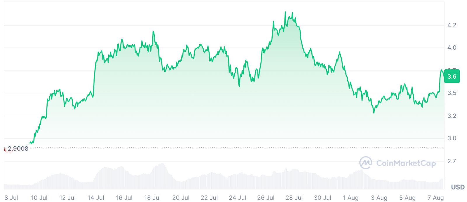 Sui is trading near $3.67, with a 24-hour volume of more than $1.4 billion and a market cap of roughly $12.9 billion.