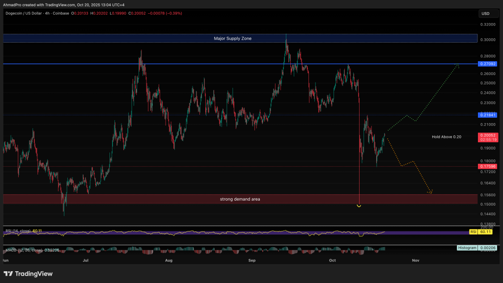 Right now, the RSI sits around 61, showing strong bullish momentum. If DOGE can flip 0.20 into solid support and hold above it, that would confirm a clearer bullish setup.