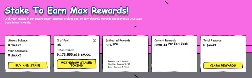 In less than three months, Maxi Doge has already raised nearly $4 million in funding, averaging over $1 million per month. Even more impressive, around 6% of its total supply – more than 9 billion MAXI tokens – are already staked in its native protocol, earning up to 84% dynamic APY.