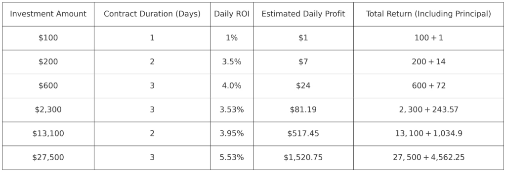 All returns are settled in USDT, ensuring users are protected from token price volatility while benefiting from crypto-based infrastructure.