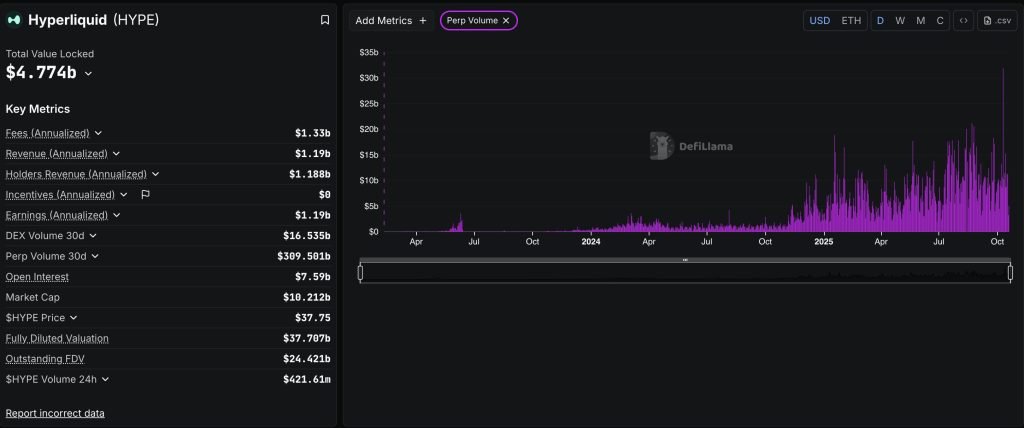 The exchange has become a benchmark for speed and execution quality, handling as much as $17 billion in daily trading at its peak this year. Its token, HYPE, carries a market capitalization of roughly $10.2 billion, supported by over $1.19 billion in annualized revenue.