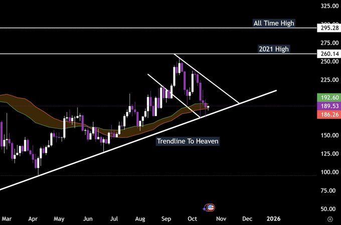 Solana price rose 4% in the past 24 hours, indicating a new strength in the rising channel. The SOL price has been trading in a steady range of $185-$210, and buyers have been protecting the support at $190. According to the analysts, every test of this area is being received with active accumulation.