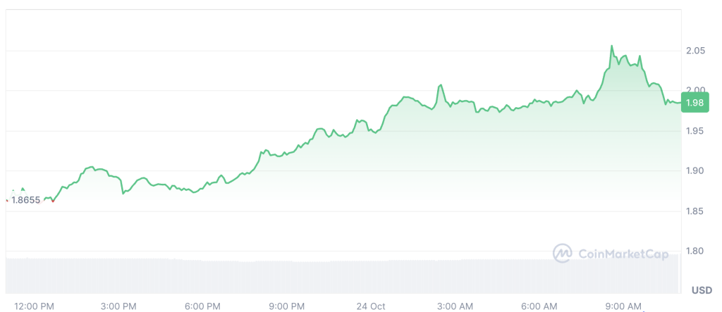 Morpho is trading around $2.0, up 8% on the day. Consistent usage is reported across lending routes and vault strategies, with borrow and supply improving week over week.