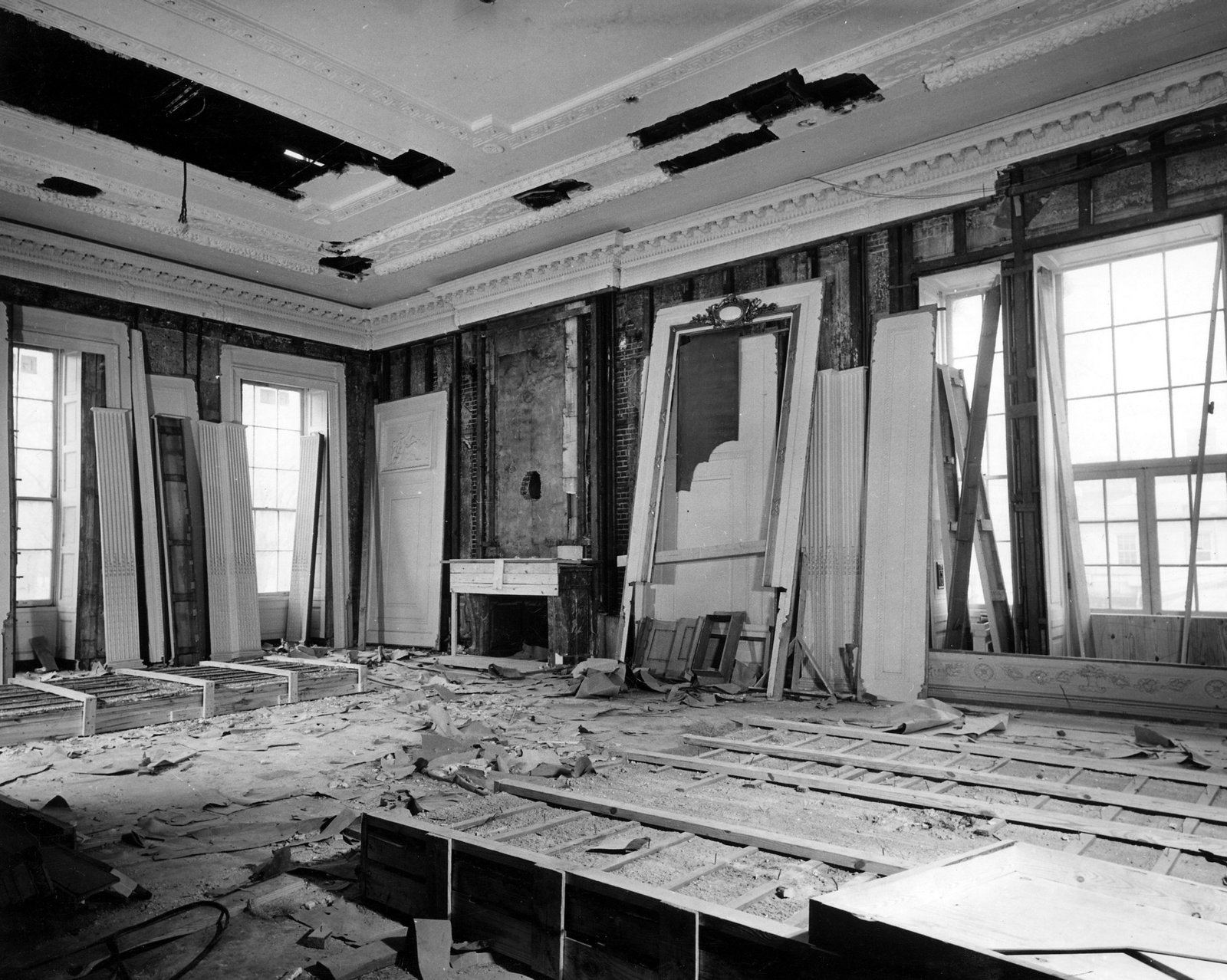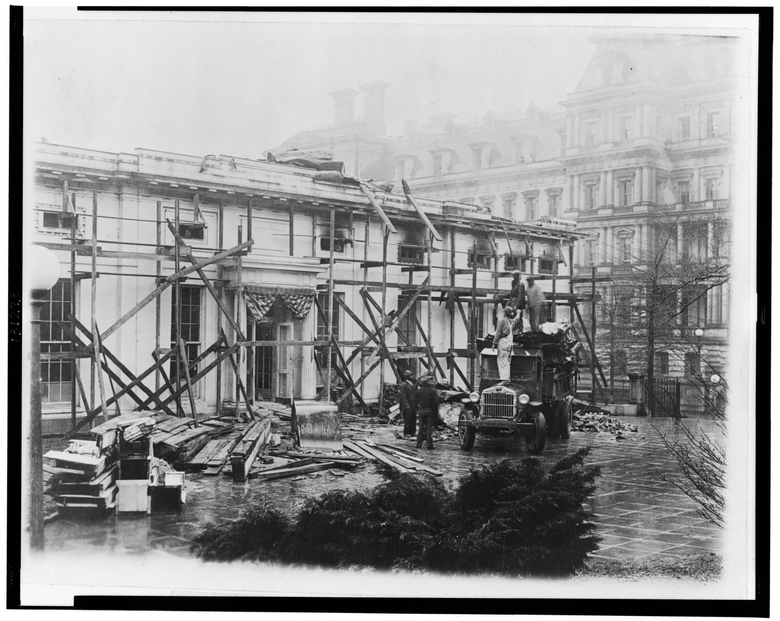 The White House’s executive offices undergo repairs in 1930 following the Christmas Eve fire. (Library of Congress)