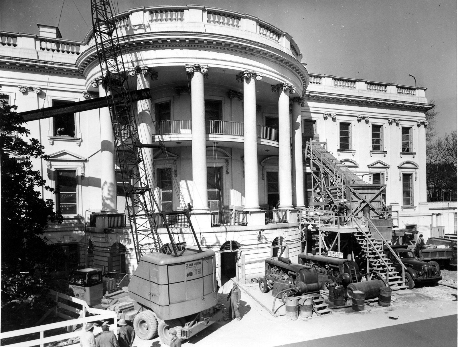 Then, in 1948, a leg on Margaret’s piano punched through her sitting room floor and into the dining room ceiling below. That did it. The White House was no longer “habitable.” Congress authorized $5.4 million for a major renovation, and of course controversy followed.