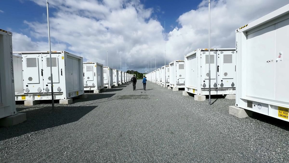 Bollingstedt, a town in northern Germany: The largest battery storage facility in Germany is located here. Project manager Carina von Schleinitz shows me the secrets of the plant. 64 mega-containers, packed with battery technology, guarantee high voltage on demand. Slow coal-fired power stations could soon become obsolete as an energy reserve.