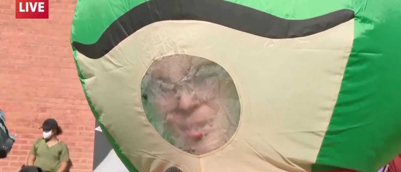 Protesters dressed in inflatable frog costumes in Charlotte, North Carolina, did not coherently state what their message is and simply emphasized that they are not violent.