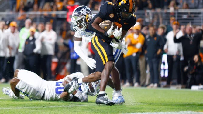 KNOXVILLE, Tenn. – Dylan Sampson #6 of the Tennessee Volunteers breaks a tackle and scores a touchdown during the second half of the game against the Kentucky Wildcats at Neyland Stadium on November 2, 2024. (Photo by Johnnie Izquierdo/Getty Images)