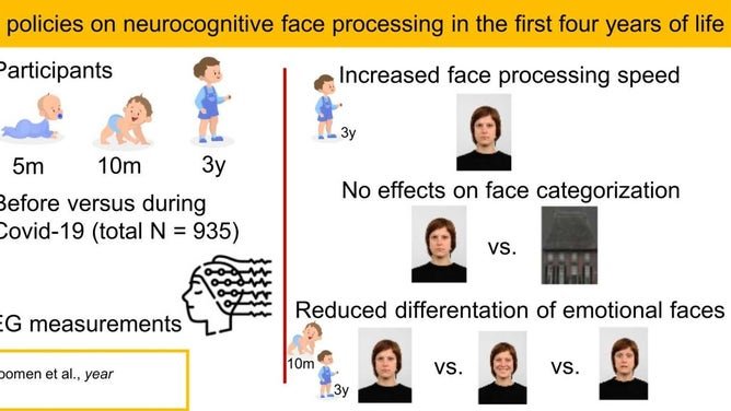 “Indeed, studies reveal that the development of facial information extraction requires experience with faces,” the study says. “This experience is acquired during social interactions. However, children’s social interactions changed tremendously due to the governmental policies taken in response to the Covid-19 pandemic. For instance, due to day-care closing and social distancing in Western countries, children likely had more interactions with immediate family members, but reduced contact with other individuals. Moreover, children’s exposure to adult social interactions in various contexts likely decreased as well. Finally, adults started wearing facemasks covering the nose and mouth, thereby diminishing the input from parts of the face. Overall, pandemic-related alterations in social interactions are expected to lead to a lower variety of facial stimuli input, hypothesized to result in changes in the development of face processing.”