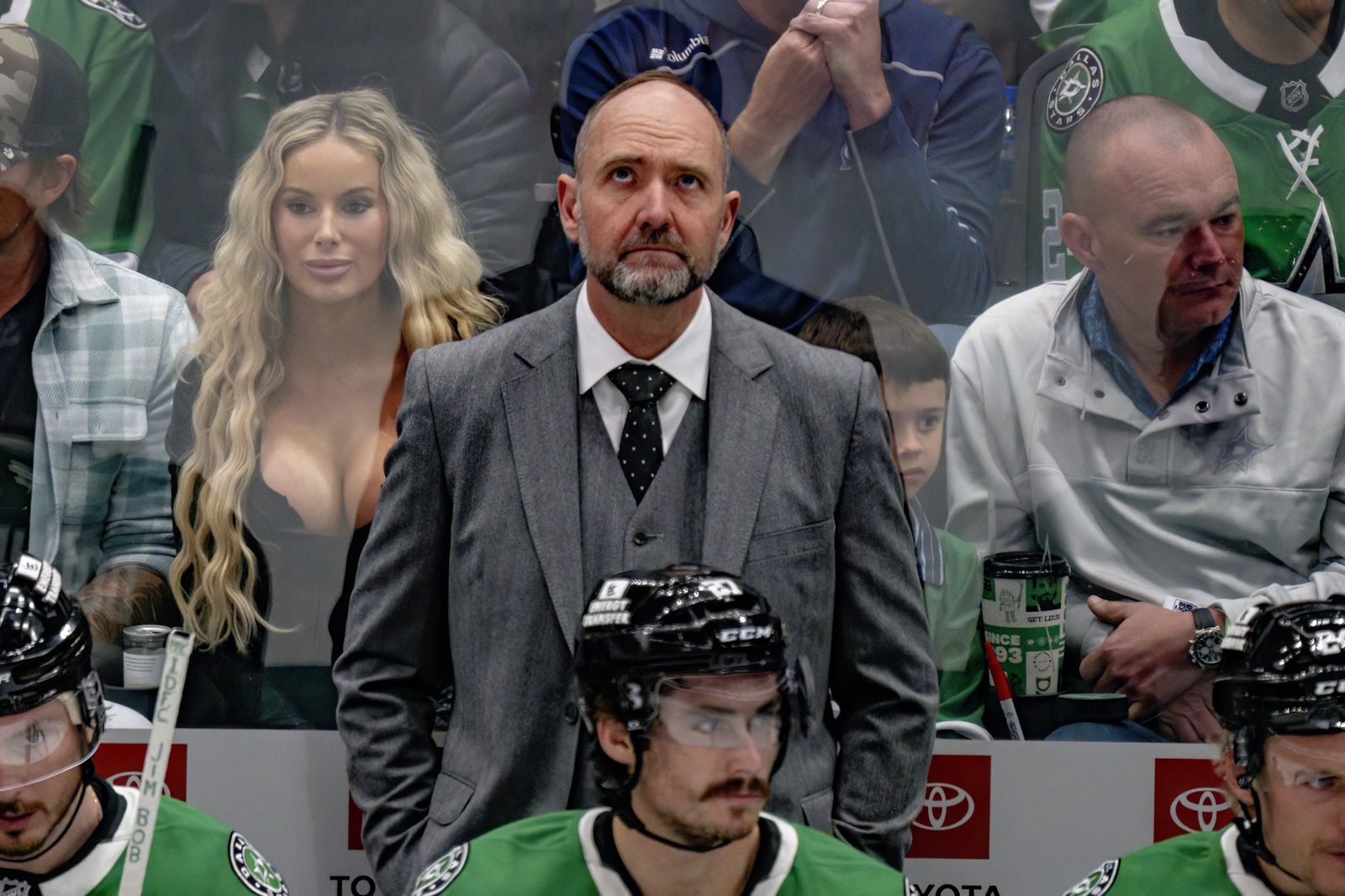 Dallas Stars superfan Natalie Gauvreau looks on during the game between the Stars and the Colorado Avalanche in game seven of the first round of the 2025 Stanley Cup Playoffs at American Airlines Center. Jerome Miron-Imagn Images